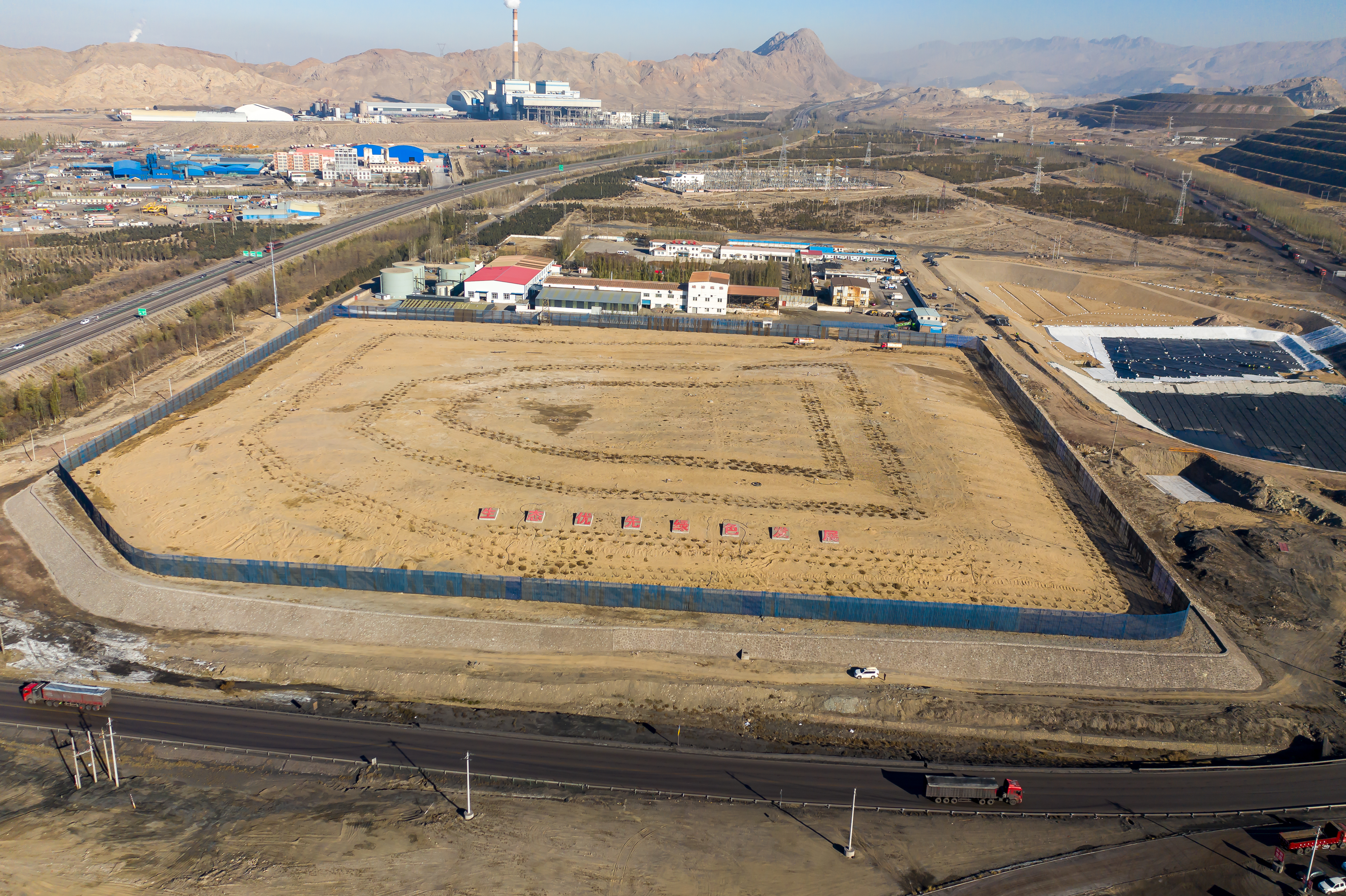 黃沙漫天,使命在肩。烏海市海渤灣區新建建筑垃圾消納場(chǎng)一期(EPC)項目地處鄂爾多斯高原西北部,烏蘭布和沙漠南緣的河谷內,是按國家標準級生態(tài)規范設計建設的無(wú)害化建筑垃圾消納場(chǎng),占地面積約35.25萬(wàn)平方米,項目建成后,將對市內產(chǎn)生的建筑垃圾實(shí)行減量化、資源化、無(wú)害化處理,有效減少水土、大氣污染,進(jìn)一步美化區域環(huán)境,提升城市整體形象。