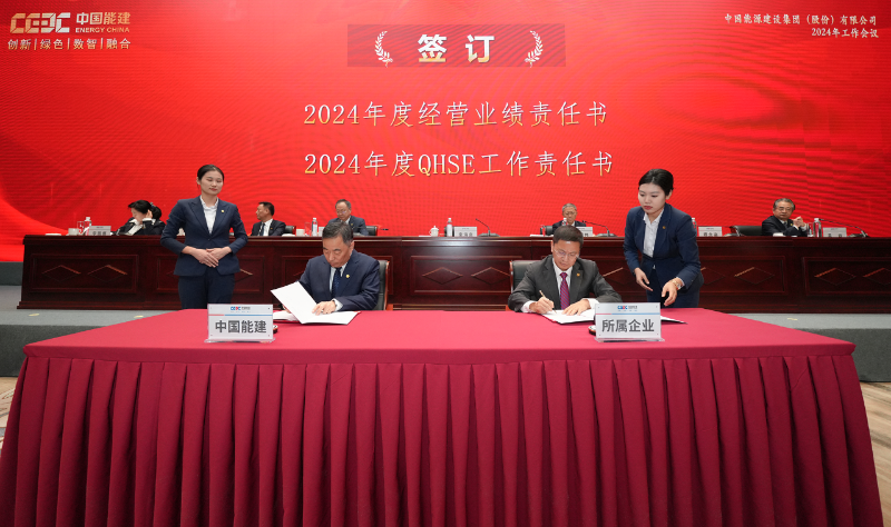 1月18日至19日,中國能建在京召開(kāi)2024年工作會(huì )議暨一屆四次職代會(huì )。會(huì )上,中國能建黨委書(shū)記、董事長(cháng)宋海良與所屬企業(yè)代表簽訂了2024年度經(jīng)營(yíng)業(yè)績(jì)責任書(shū)、QHSE工作責任書(shū)。